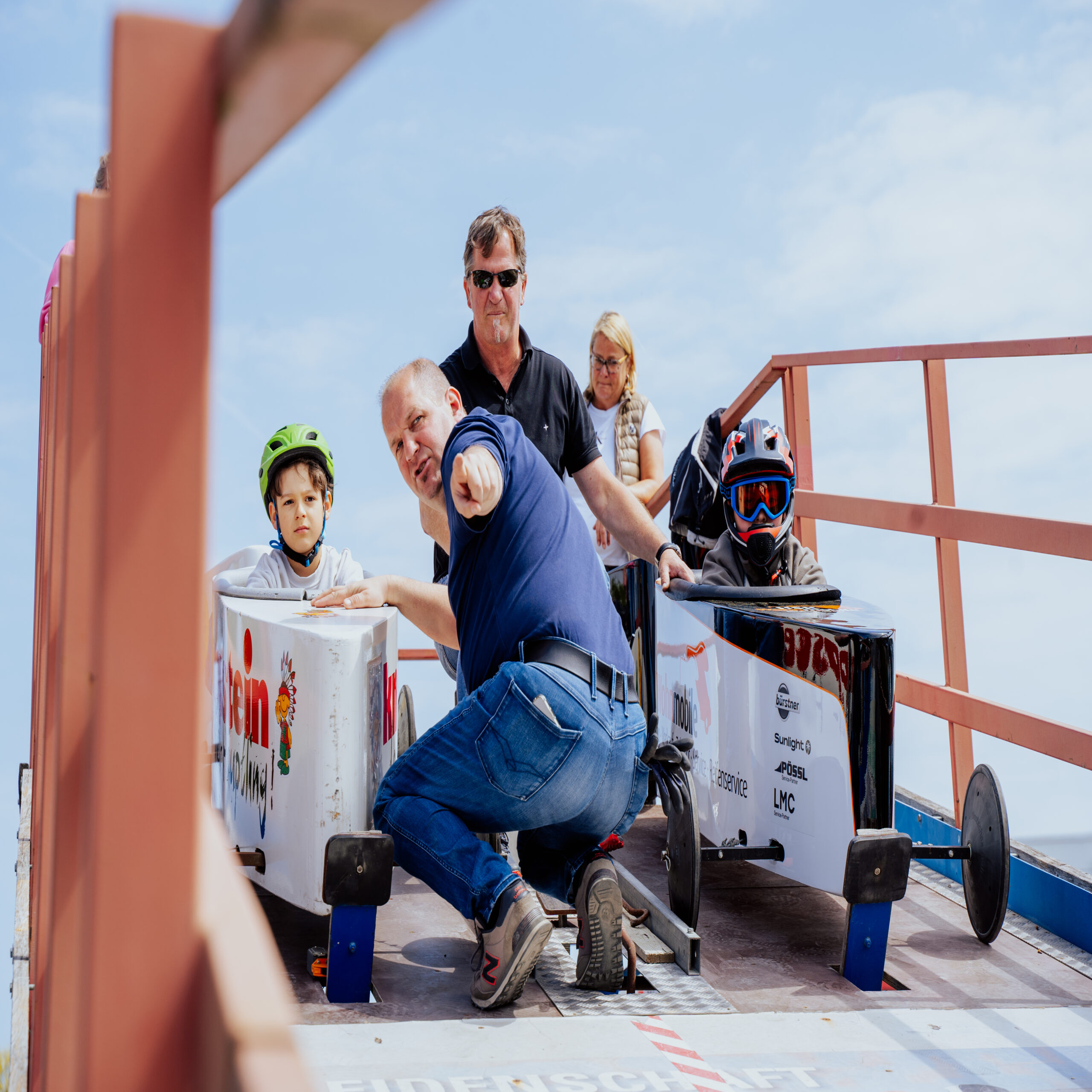 Vollgas heißt es beim Seifenkistenrennen in Enste. Die Rennstrecke führt vom Schneidweg bis zum Kreisverkehr bei Intersport Pilz. Neben jungen Fahrerinnen und Fahrern dürfen auch Erwachsene teilnehmen. Damit ist Rennaction für alle Altersgruppen garantiert. Infos und Anmeldung unter: www.meschede.de/seifenkistenrennen